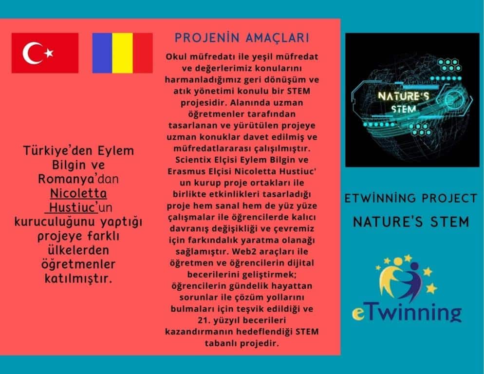 Okulumuz 4A sinif öğretmeni İbrahim Halil Demirci, Okul müfredati ve değerlerimiz konularinin harmanlandiği geri dönüşüm ve atik yönetimi konulu bir stem projesine dahil olmustur, bu projeye 10 farkli ulkeden 32 öğretmenin birlikte yueuttugu projede her hafta bir etkinlik yapiliyor, projeye destek veren İlçe Milli Eğitim Muduru Yusuf Yilmaz'a, Okul muduru Necip Fazil Çakmak'a, sinif öğretmeni İbrahim Halil Demirci'ye, siniftaki öğrencilere, velilere çok tesekkur ederiz.